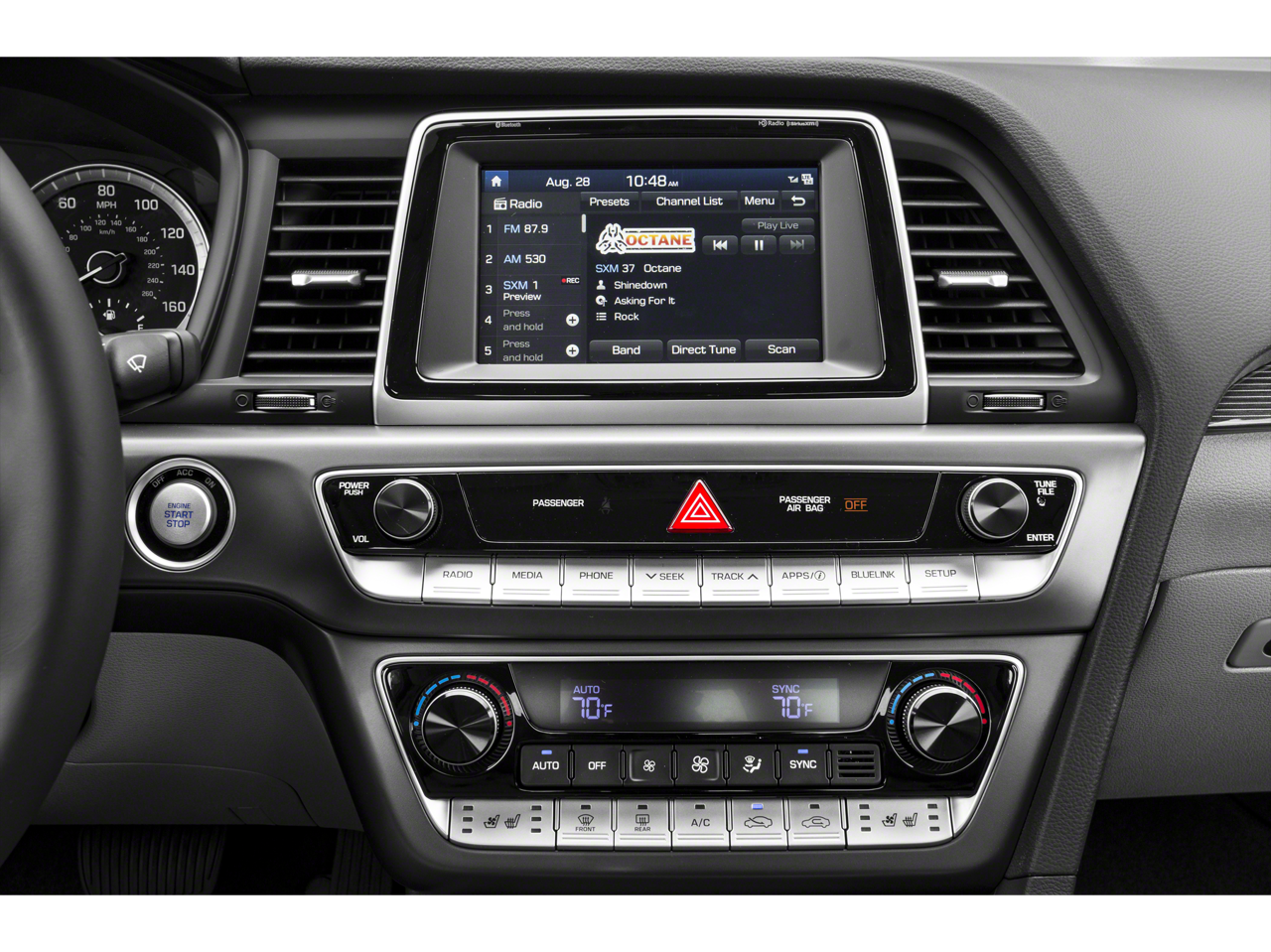 - Radio: AM/FM/HD/SiriusXM/MP3 Display Audio -inc: 7" color touchscreen, HD Radio technology w/multicasting, Apple CarPlay, Android Auto, integrated Bluetooth® w/phonebook transfer, 6 speakers (2 front-door-mounted, 2 tweeters and 2 rear) and iPod/USB, wireless phone charging and auxiliary input jacks, Blue Link Telematics Gen 2, Blue Link Connected Care Package (3-year complimentary trial) and Blue Link Remote Package (3-year complimentary trial)