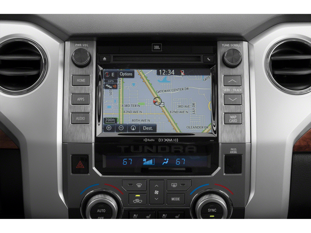 • Radio: Entune Premium w/JBL Audio & Navigation -inc: AM/FM/HD Radio, CD player MP3/WMA playback capability, integrated navigation system, AM/FM cache radio, 12 JBL speakers including subwoofer and amplifier, 7" high-resolution touch-screen display w/split-screen, auxiliary audio jack, USB 2.0 port w/iPod connectivity and control, Gracenote album cover art, HD predictive traffic and Doppler weather overlay, Bluetooth® hands-free phone capability w/advanced voice recognition, phone book access and music streaming and Siri Eyes Free, Entune App Suite, Destination Search, iHeartRadio, MovieTickets.com, OpenTable, Pandora, Yelp, Facebook Places, Slacker Radio and real-time info w/traffic, weather, fuel prices, sports and stocks, SIRIUSXM Satellite Radio, complimentary SiriusXM All Access 90-day trial subscription