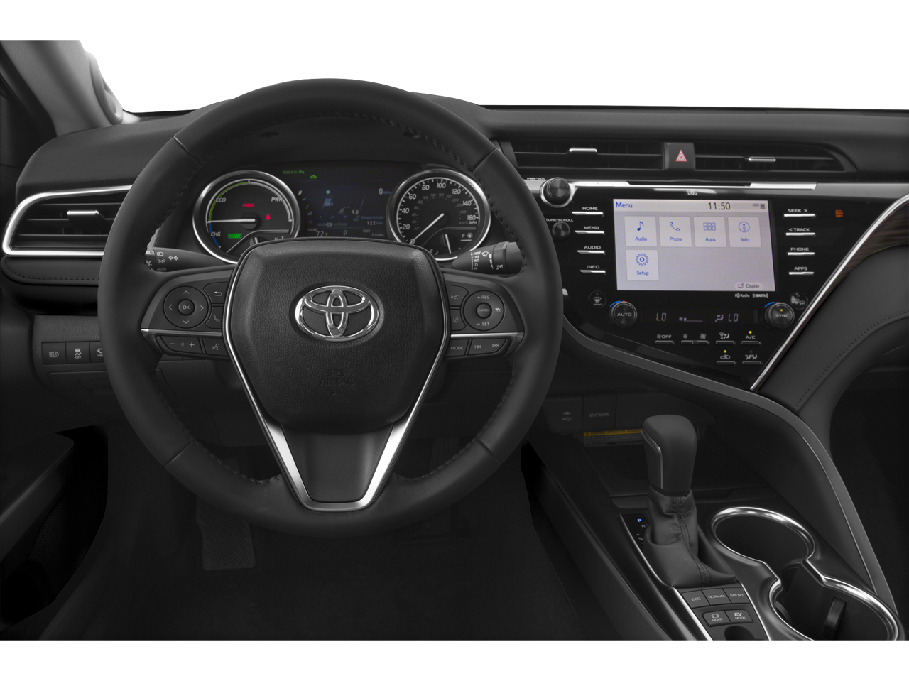 The interior of this Camry Hybrid SE is designed with your comfort and convenience in mind. Dual-zone automatic climate control, a power driver's seat, and steering wheel-mounted audio controls provide a premium driving experience. Stay connected with the Entune 3.0 Audio Plus system, which includes Bluetooth®, a backup camera, and 6 speakers.