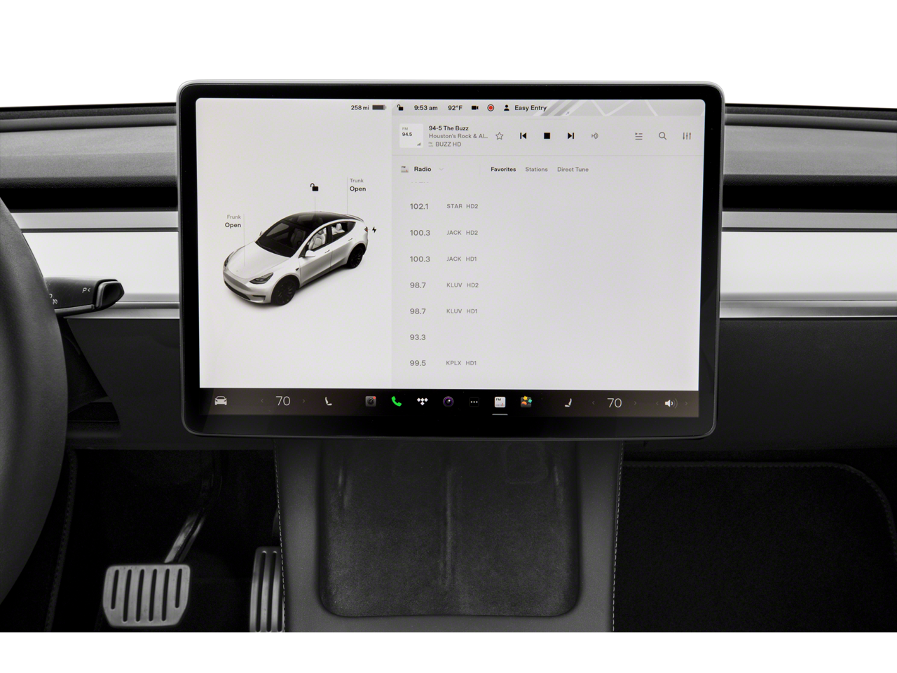 Highlighted by its - 15 Speakers, Premium Audio System, Radio data system, 9.0 Axle Ratio, Air Conditioning, Automatic temperature control, Front dual zone A/C, Rear window defroster, Memory seat, Power driver seat, Power steering, Power windows, Remote keyless entry, Steering wheel memory, Steering wheel mounted A/C controls, Steering wheel mounted audio controls, Speed control, Power Liftgate - this Model Y is engineered to provide a truly remarkable driving experience.