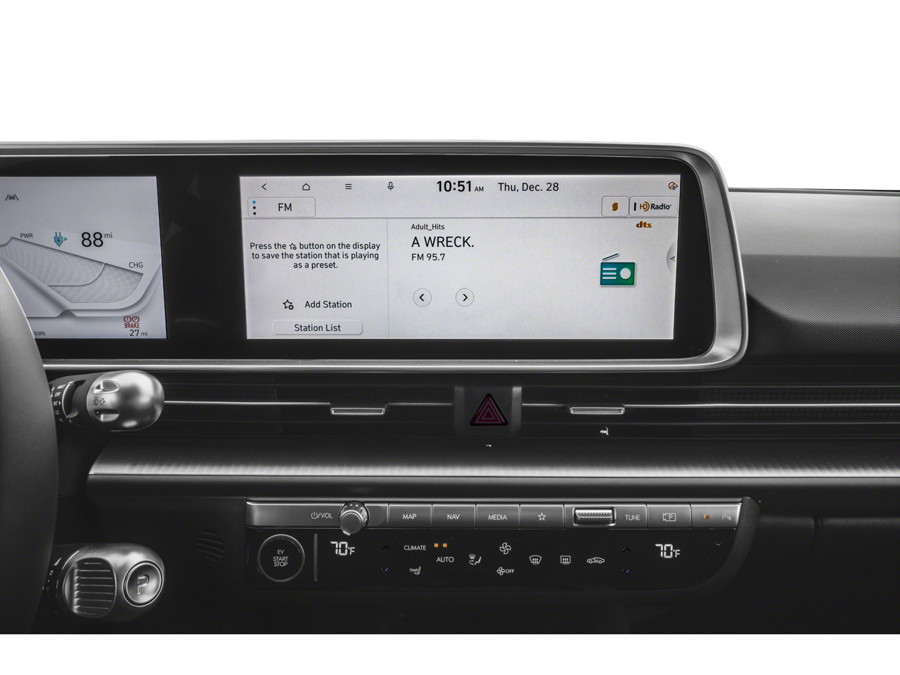 - Radio: AM/FM/SiriusXM/HD Radio Audio System -inc: 12.3" color touchscreen, 6-speakers, onboard navigation, traffic flow and incident data via HD Radio (HERE), dynamic voice recognition, wired Android Auto and Apple CarPlay, BlueLink connected car services, Bluetooth® multiple device connection for up to 2 devices, OTA update capable and USB type-A input