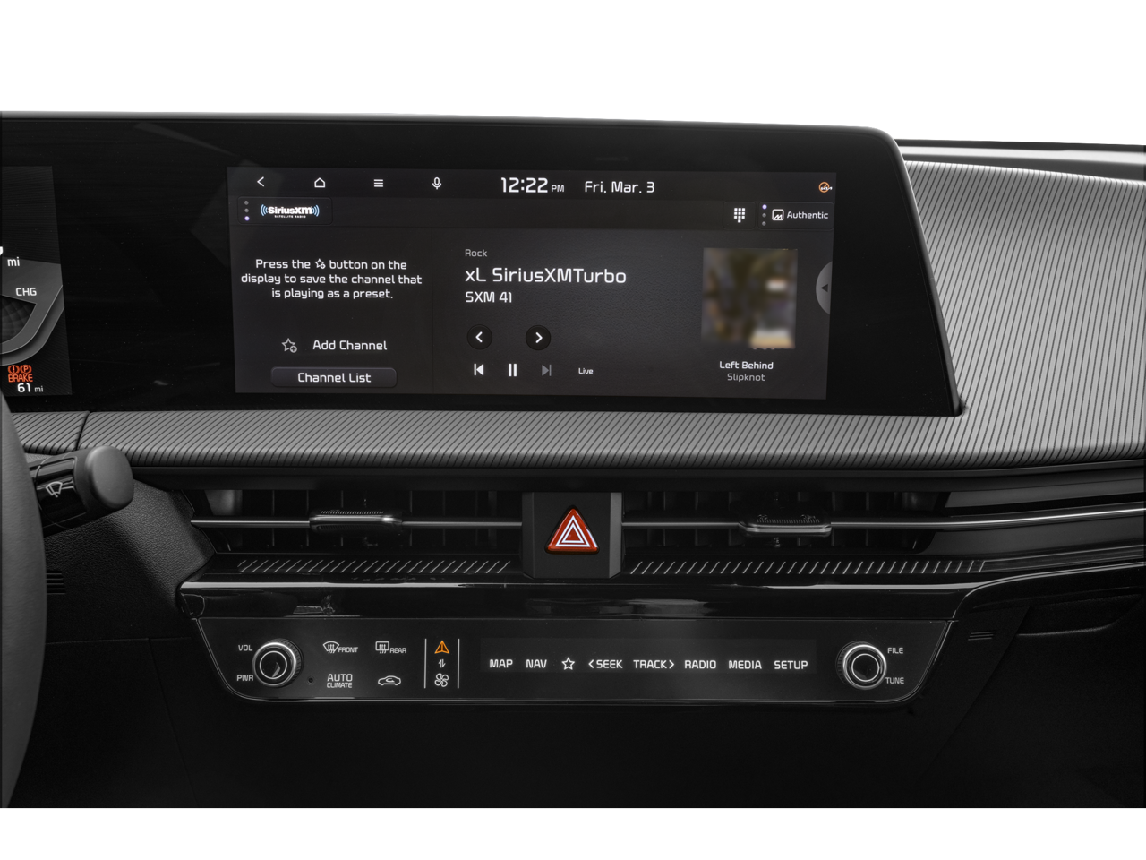 • Regenerative 4-Wheel Disc Brakes w/4-Wheel ABS, Front And Rear Vented Discs, Brake Assist, Hill Hold Control and Electric Parking Brake