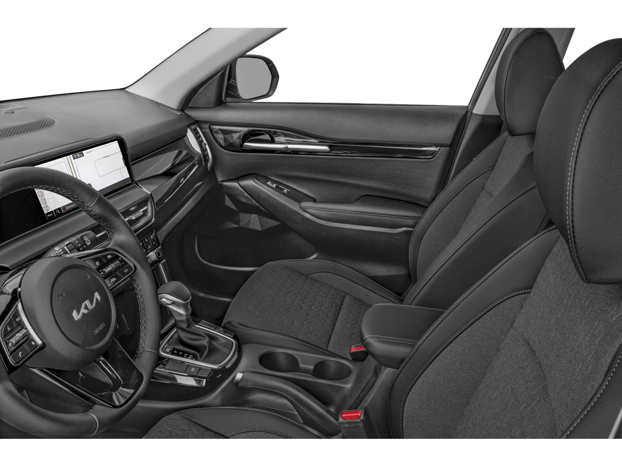 Step inside the Seltos S and discover a cabin that caters to your every need. The Glossy Black Door Garnish Package adds a touch of sophistication, while the 6-speaker audio system with SiriusXM radio ensures your favorite tunes accompany you on every journey. The Navigation System and Apple CarPlay & Android Auto integration keep you connected and in control, while the Leather Shift Knob and Leather Steering Wheel provide a premium feel.