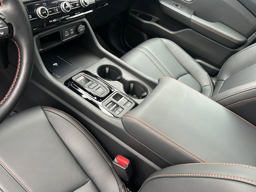 The interior of the Pilot TrailSport is equally impressive, with premium synthetic leather seating, heated front seats, and a spacious, versatile cabin that can accommodate your family and all their gear. The split-folding rear seat and power-adjustable driver's seat ensure maximum comfort and convenience.